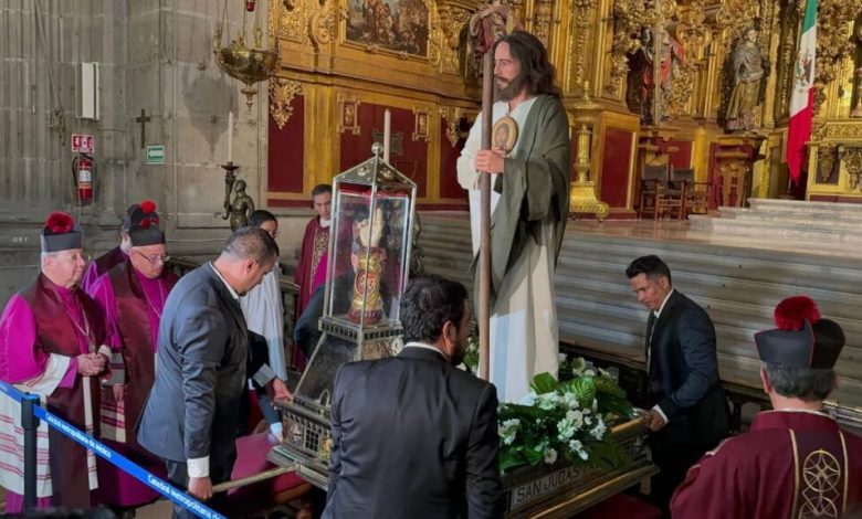 ¡Histórico! La reliquia de San Judas Tadeo llegó a México y la primera en recibirla fue nuestra querida Catedral Metropolitana de la Ciudad de México, quien abrió sus puertas para recibir a todos los devotos que desean pedir por su intercesión ante Jesucristo. El fragmento del… pic.twitter.com/TaQYOa0c4Q