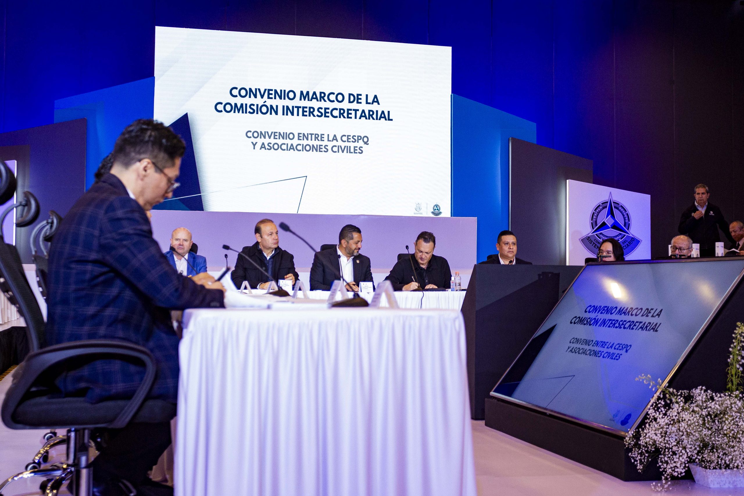 El titular del Poder Ejecutivo estatal, Mauricio Kuri González, presidió la sesión de la Comisión Intersecretarial del Sistema Penitenciario de Querétaro, acto en el que estuvo acompañado por los titulares de las dependencias que participan en la reinserción social de las personas privadas de su libertad o que se encuentran en prisión preventiva o en ejecución de sanción, por mandato judicial, para la firma del Convenio Marco de Colaboración que materializa su voluntad para que las acciones del gobierno estén centradas en la justicia hacia las y los ciudadanos.