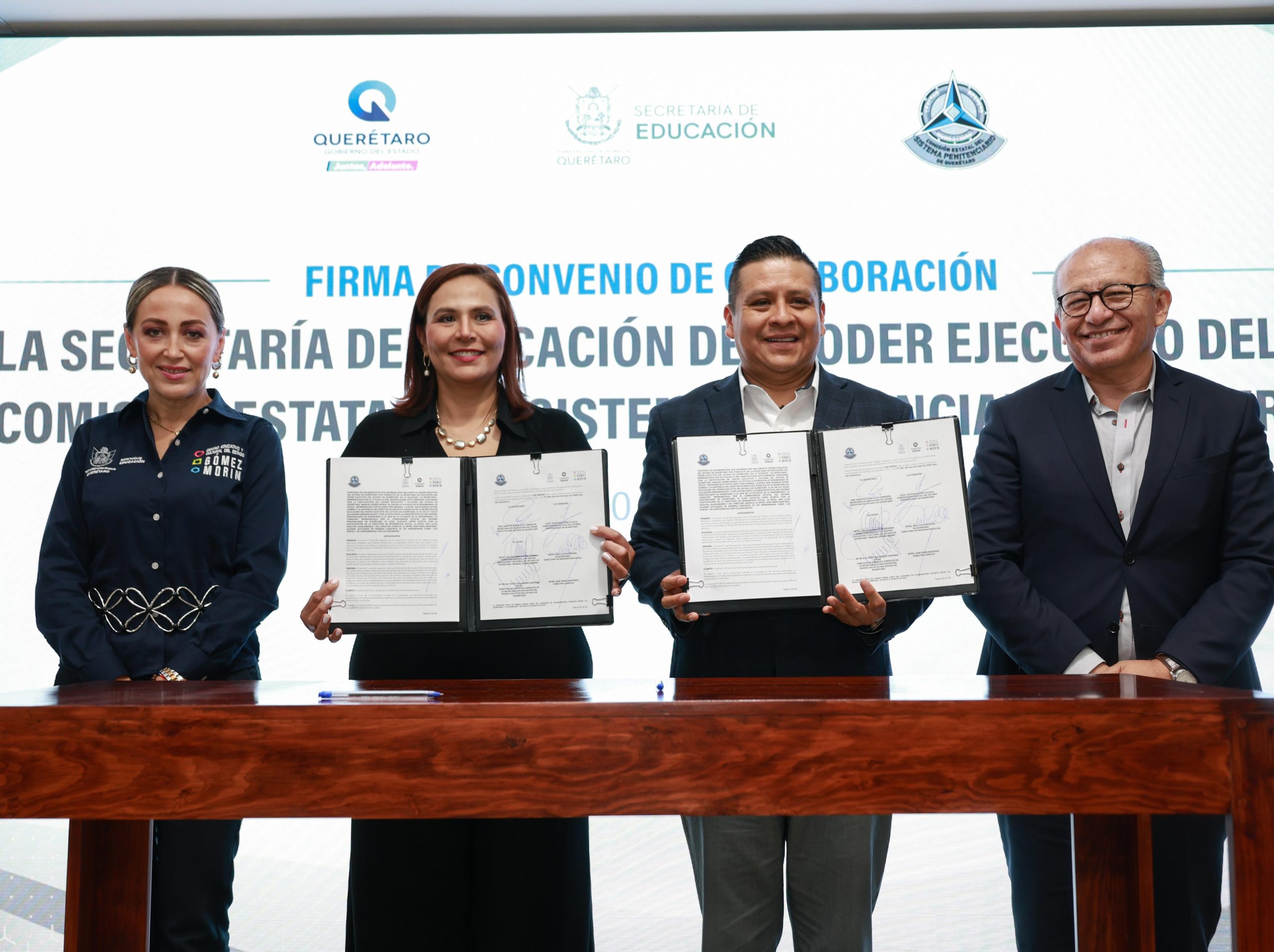 Con el objetivo de generar la inclusión de personas pre liberadas y liberadas a la sociedad proporcionando espacios a través de los servicios que ofrece el Centro Educativo y Cultural (CECEQ) Manuel Gómez Morin, Martha Soto encabezó la firma de convenio de colaboración entre la Secretaría de Educación del Estado de Querétaro (SEDEQ) y la Comisión Estatal del Sistema Penitenciario (CESPQ), a cargo de Gustavo López Acosta.